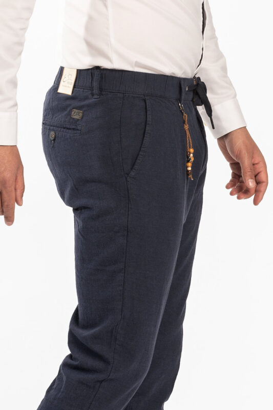 Εξαιρετικά ανάλαφρο και ευχάριστο στην αίσθηση, με σύνθεση λινό-βαμβάκι και κορδόνι στη μέση για χαλαρή εφαρμογή.
