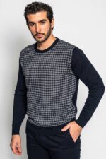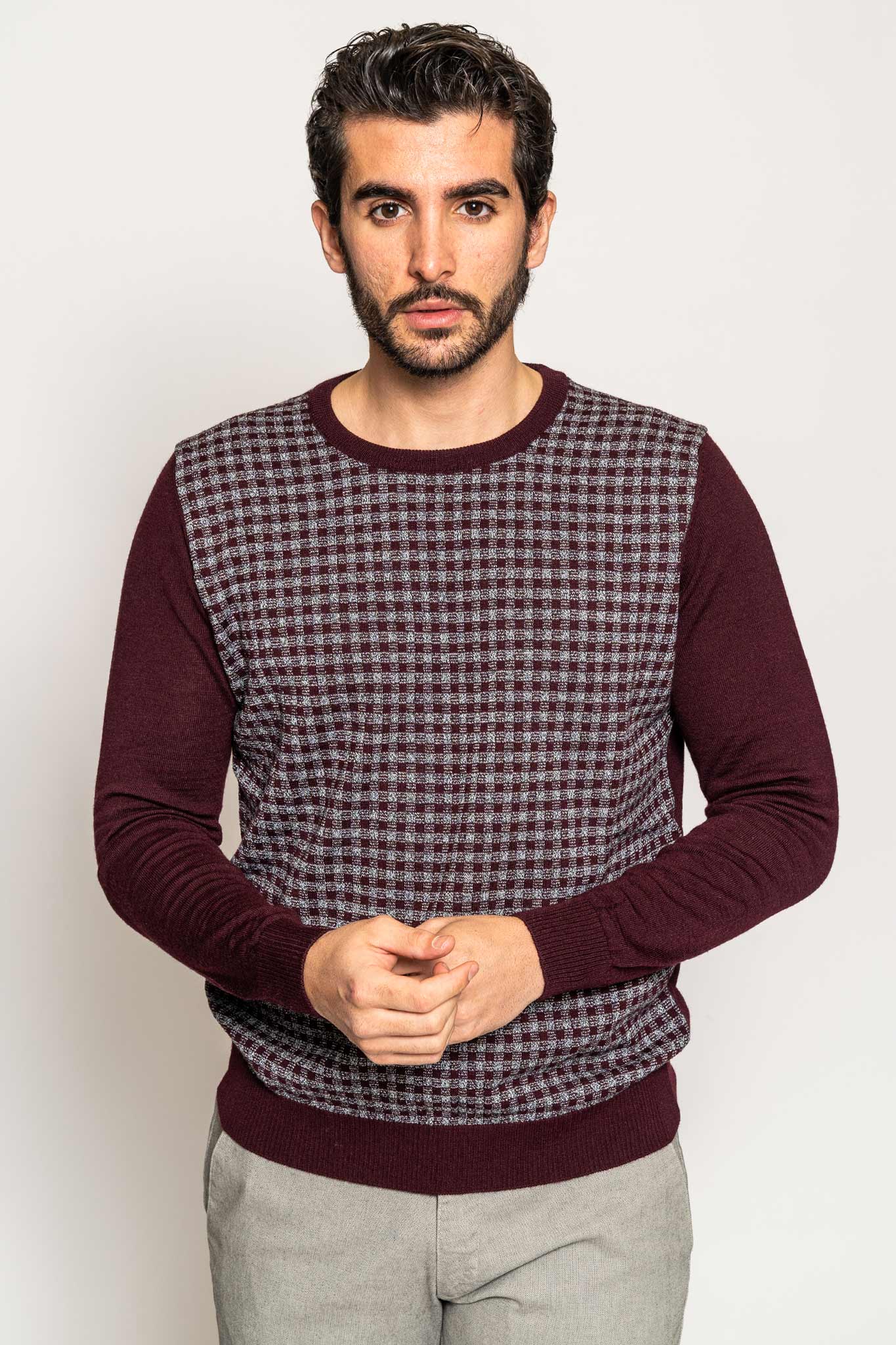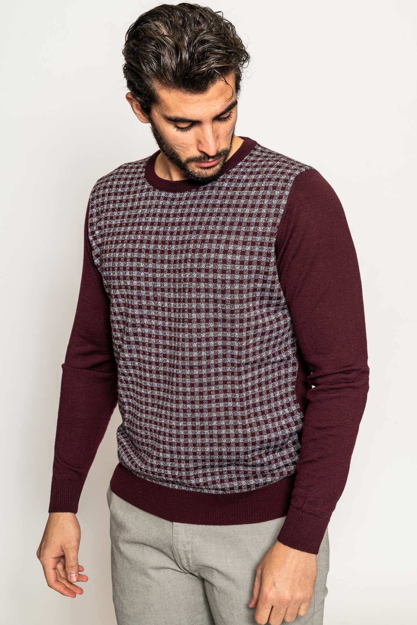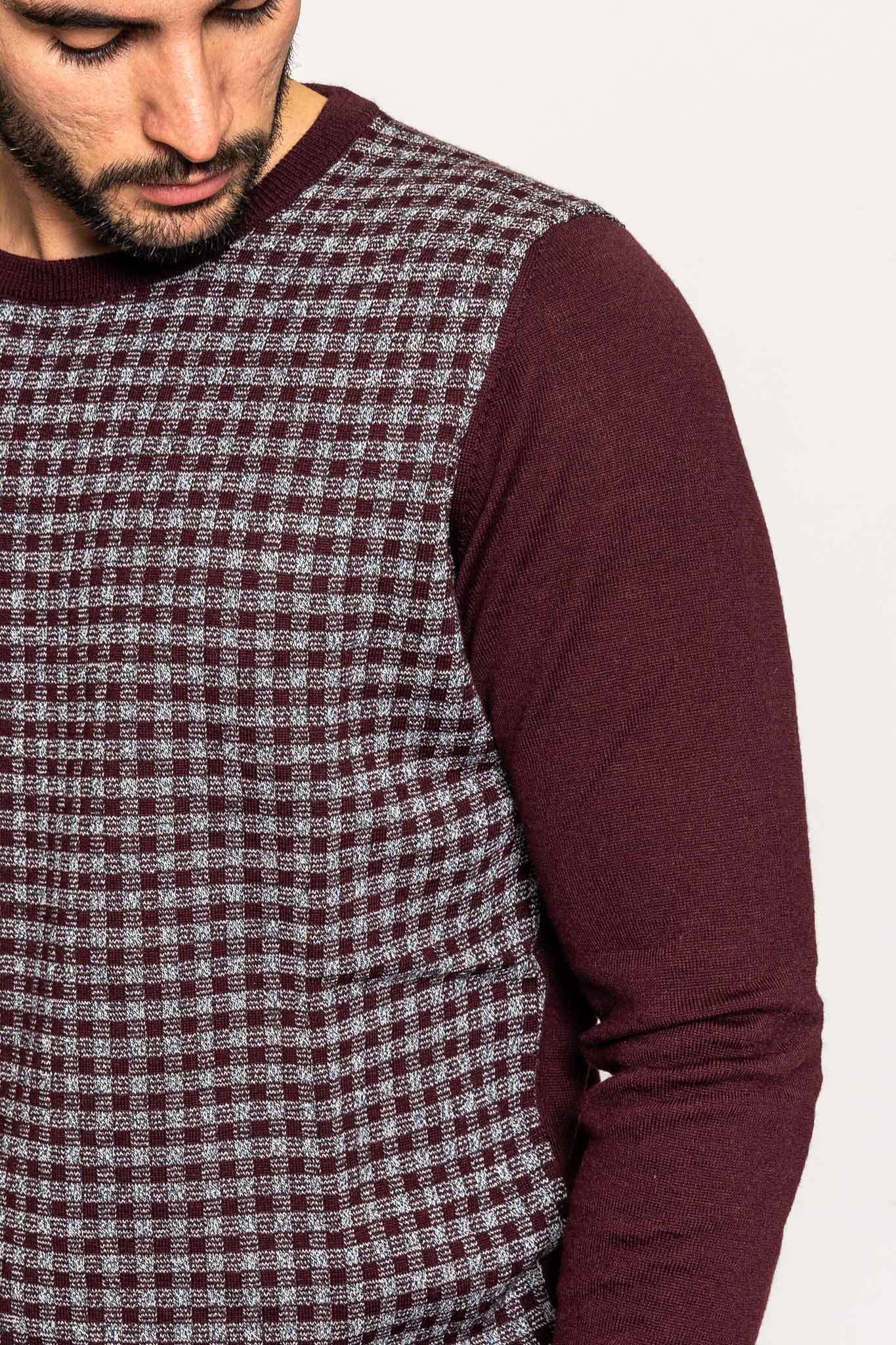 Λαιμόκοψη, με δίχρωμο micro jacquard σχέδιο και μονόχρωμη πίσω όψη.