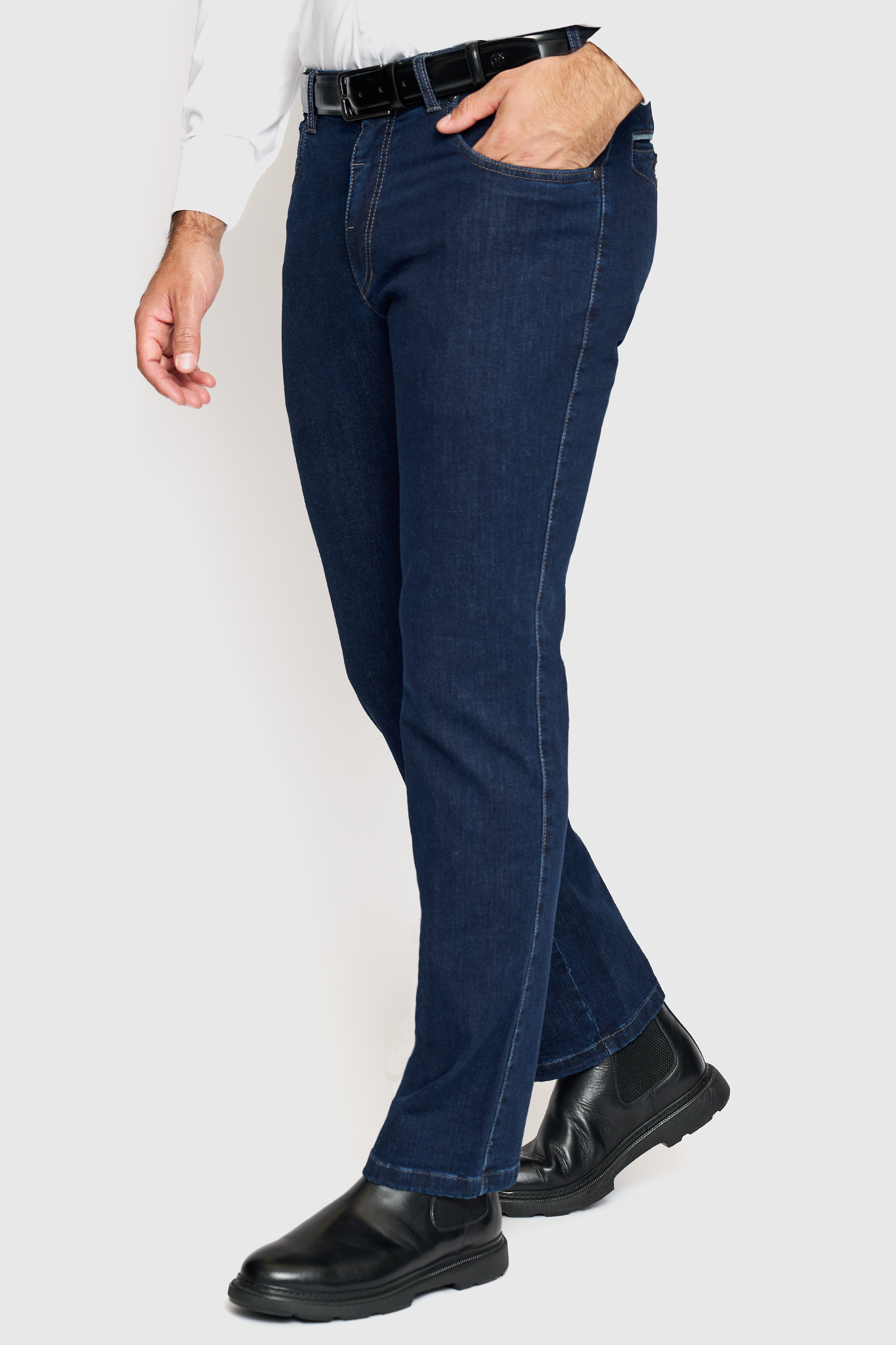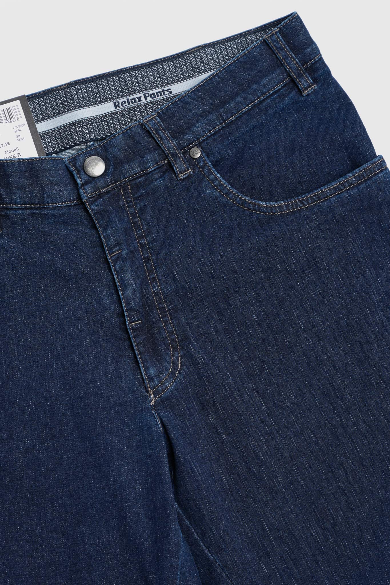 Σε μπλε απόχρωση, με διακριτικό κομποζέ ‘φιλέτο’ στις πίσω τσέπες.