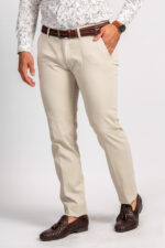 Βαμβακερό παντελόνι chinos με μικροσχέδιο στην ύφανση και εκρού χρώμα.