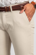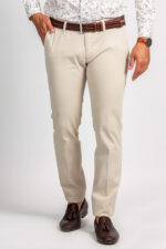 Βαμβακερό παντελόνι chinos με μικροσχέδιο στην ύφανση και εκρού χρώμα.