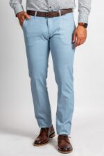 Βαμβακερό παντελόνι chinos με μικροσχέδιο στην ύφανση, σε ιδιαίτερη σιελ απόχρωση.