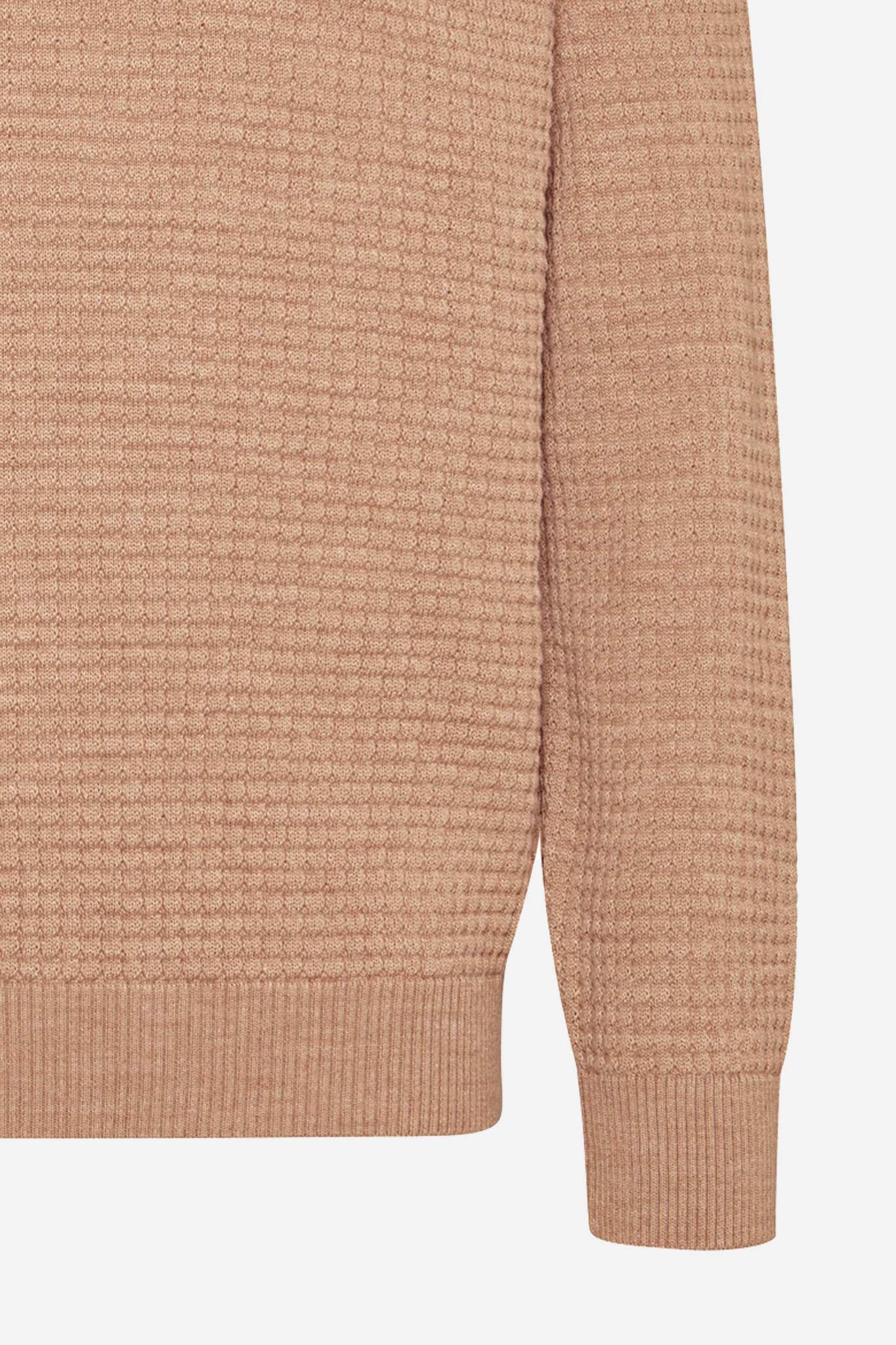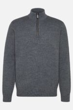 Εξαιρετικής ποιότητας πλεκτό από σύμμεικτο βαμβάκι, με μονόχρωμη πλέξη και alcantara trimming στο φερμουάρ.