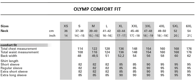 FIT …………………………. Comfort ( Olymp · Comfort Fit )