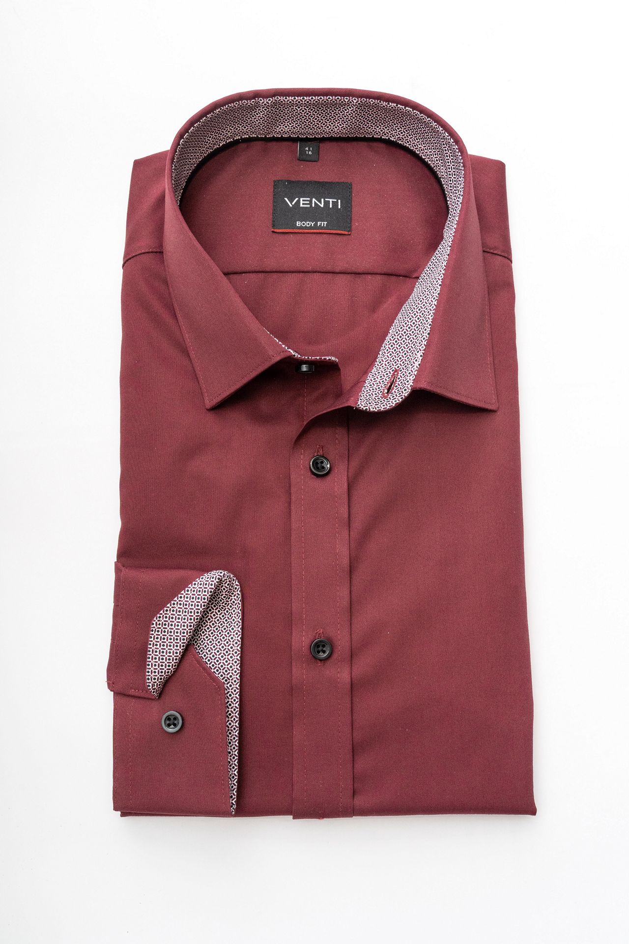 Μονόχρωμο πουκάμισο Venti σε μπορντό χρώμα, με λεπτομέρειες από πρόσθετο ύφασμα.