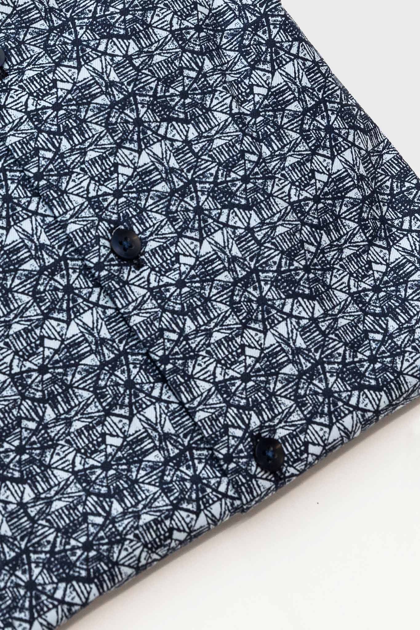 Με print μοτίβο σε τόνους του μπλε-ραφ και κουμπιά σε σκούρο μπλε χρώμα.