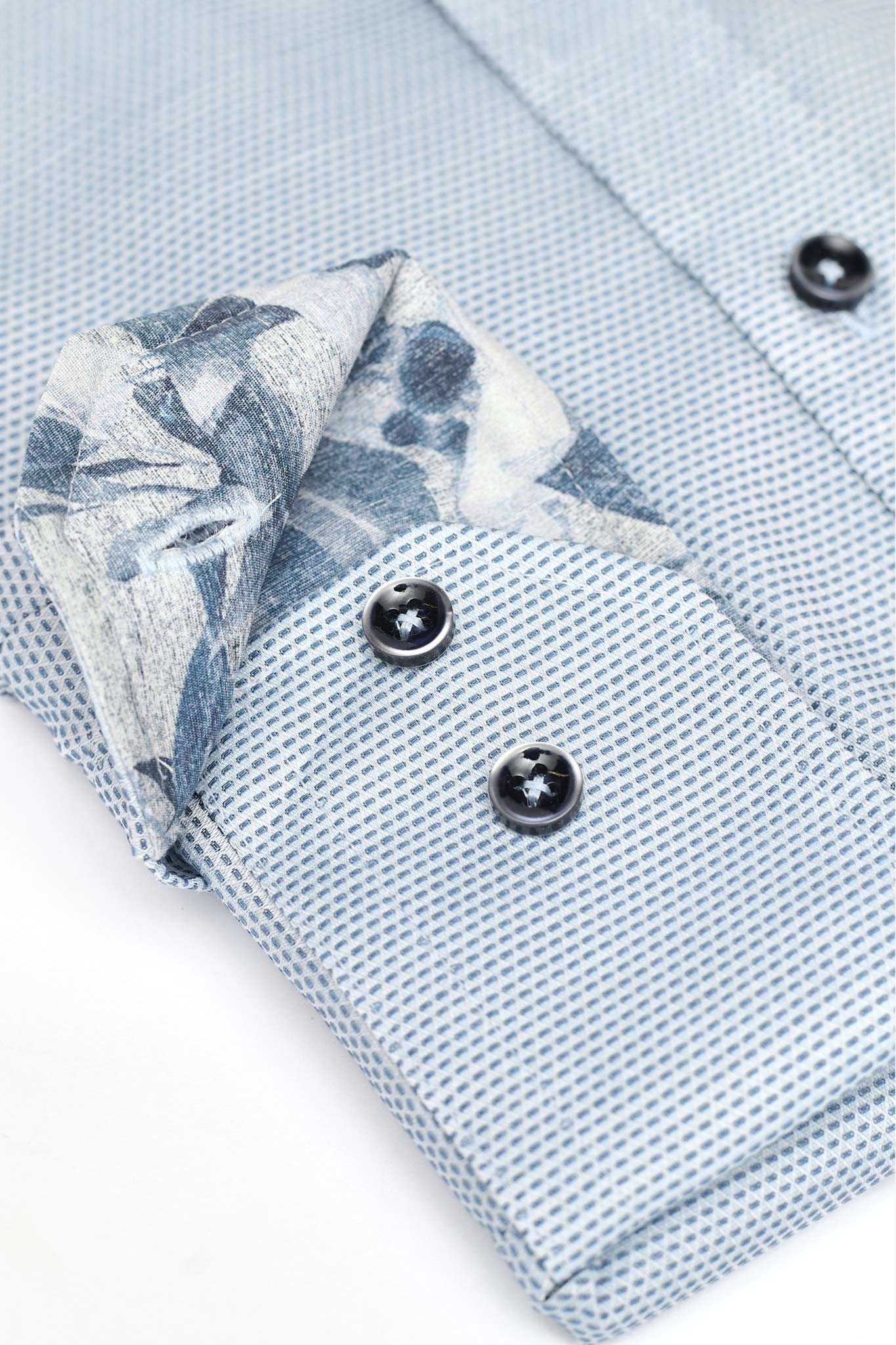 Με διακριτικό micro-jacquard σχέδιο στην ύφανση και απαλή διχρωμία σε σιελ τόνους