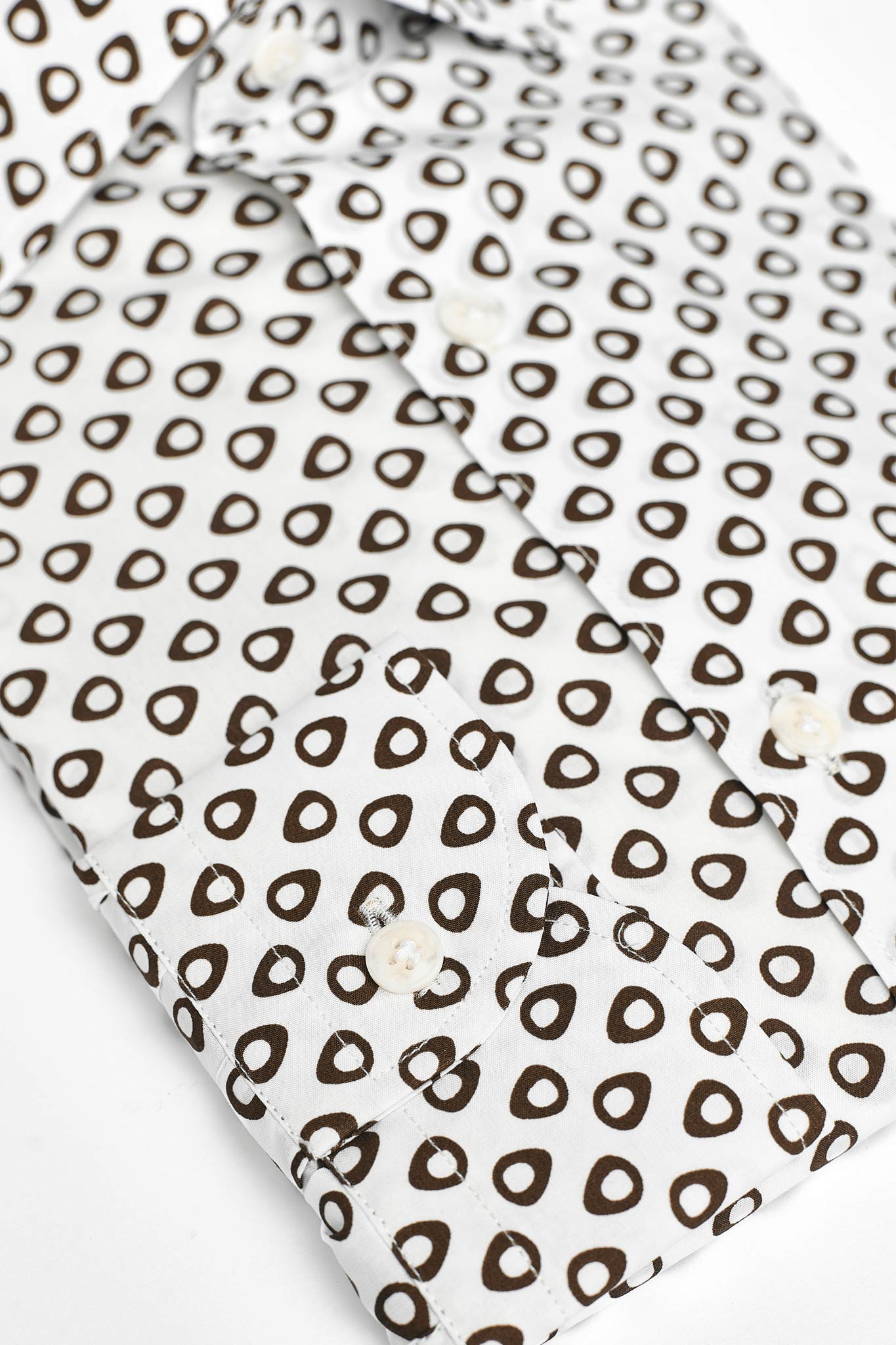 Με print mini pattern σε καφέ χρώμα και λευκό φόντο.