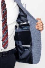 Μεσάτο, με ελαφριά βάτα στους ώμους, αγκαλιάζει το σώμα δίνοντας μια αίσθηση κομψότητας.