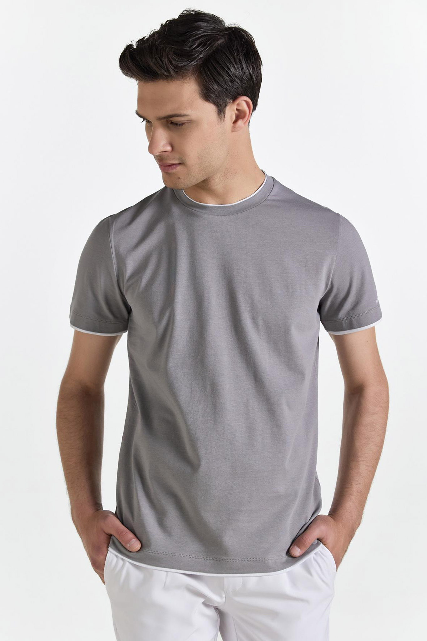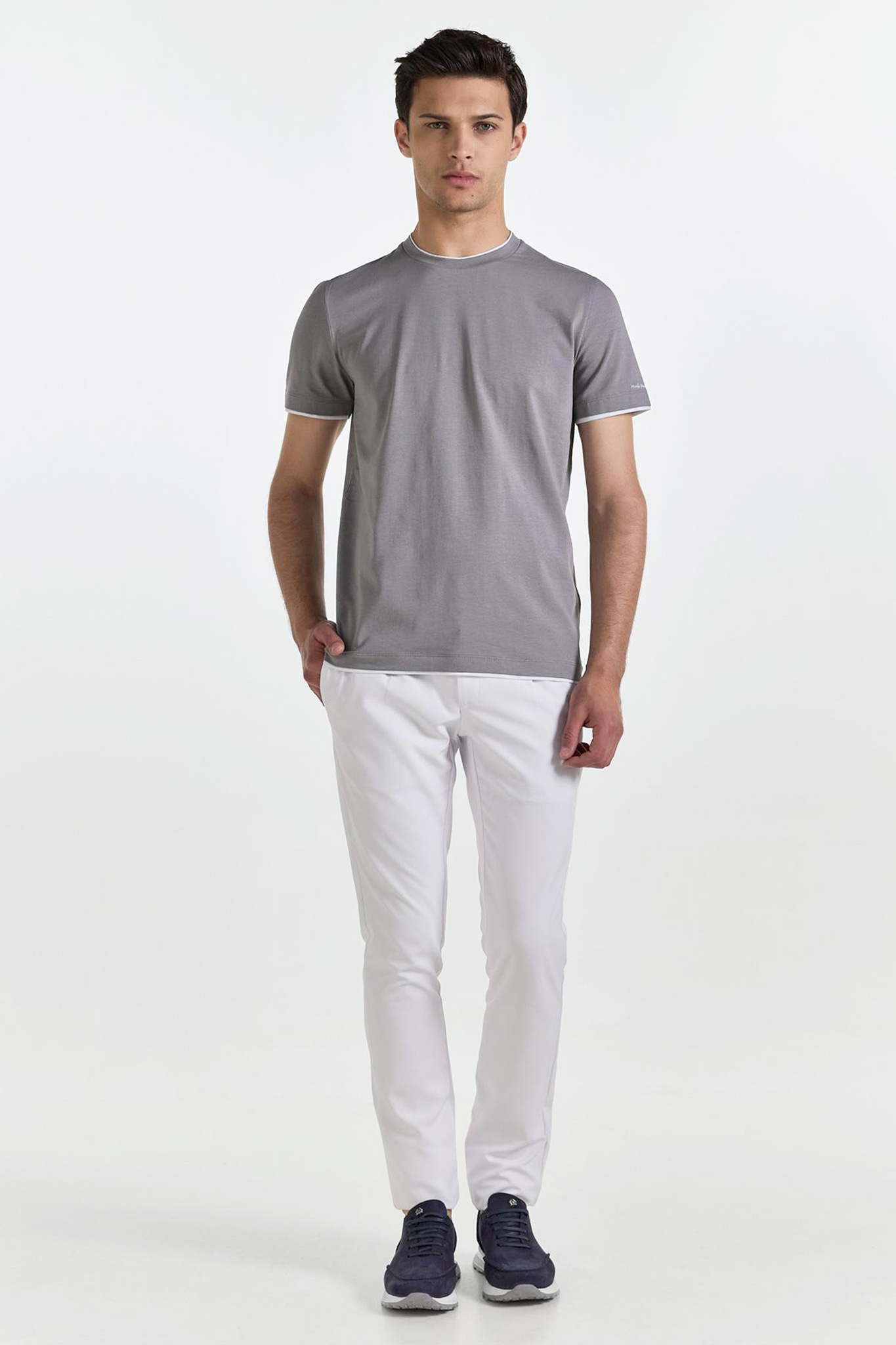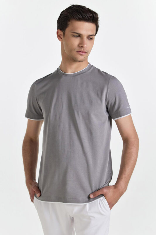 Μονόχρωμο γκρι t-shirt Monte Napoleone, σε slim γραμμή.