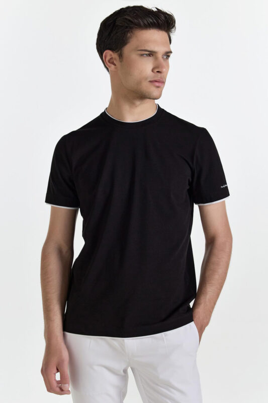 Μονόχρωμο μαύρο t-shirt Monte Napoleone, σε slim γραμμή.