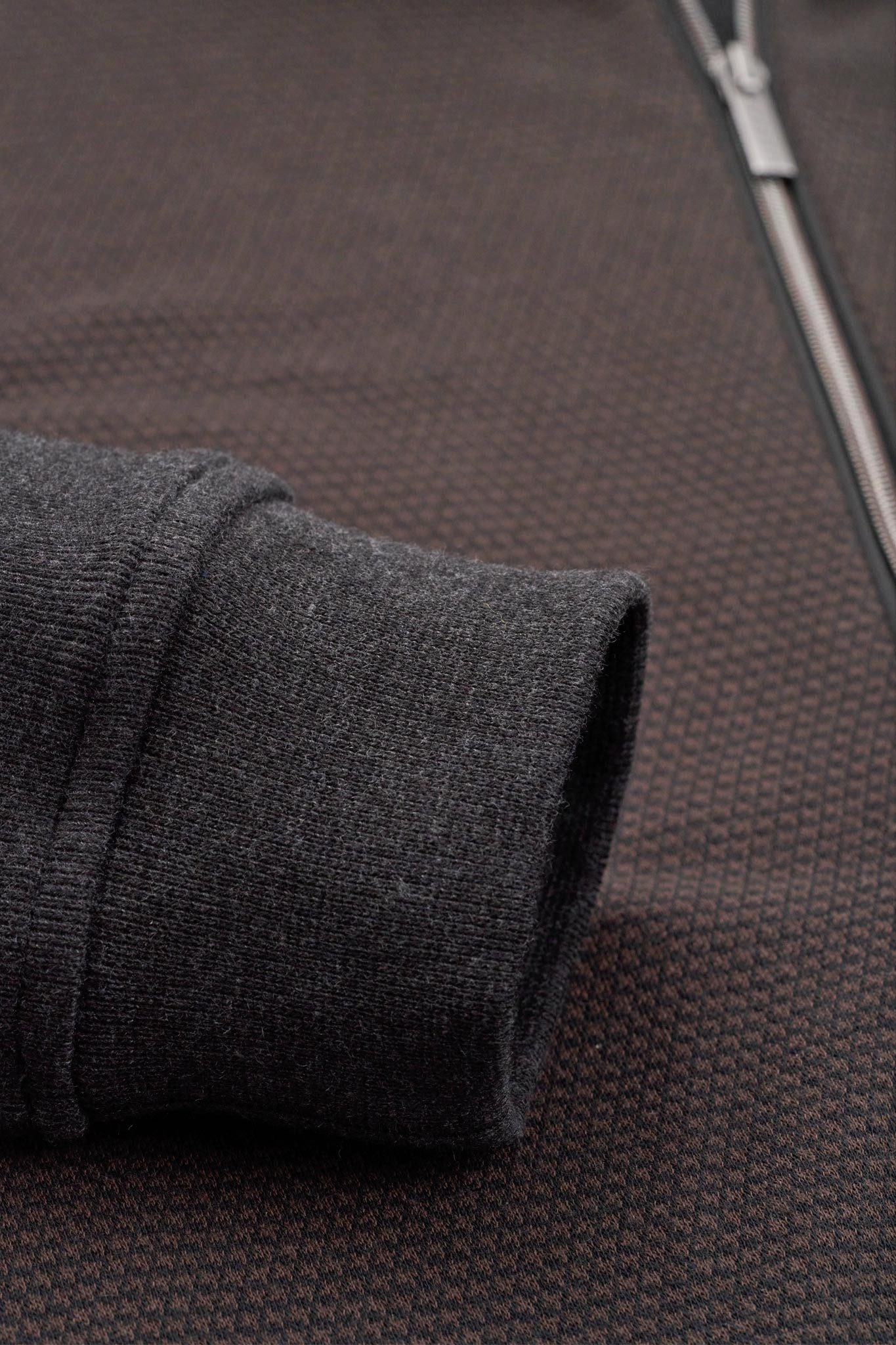 Κλείσιμο με φερμουάρ μέχρι πάνω και λάστιχο στο κάτω μέρος και τα μανίκια.